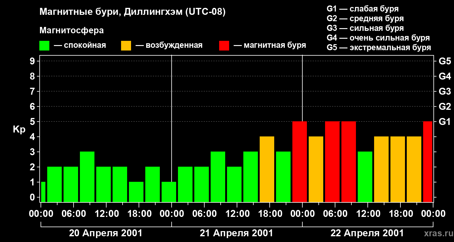 Магнитные бури в Диллингхэме — 22 апреля 2001 года
