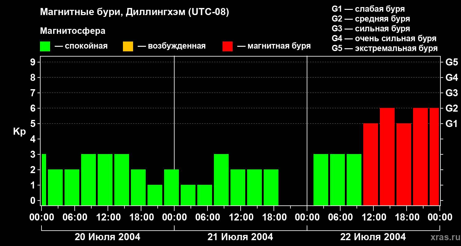 Магнитные бури в Диллингхэме — 22 июля 2004 года