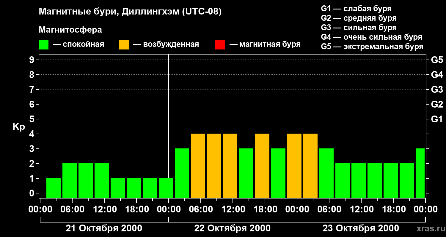 Магнитные бури в Диллингхэме 23 октября 2000 года