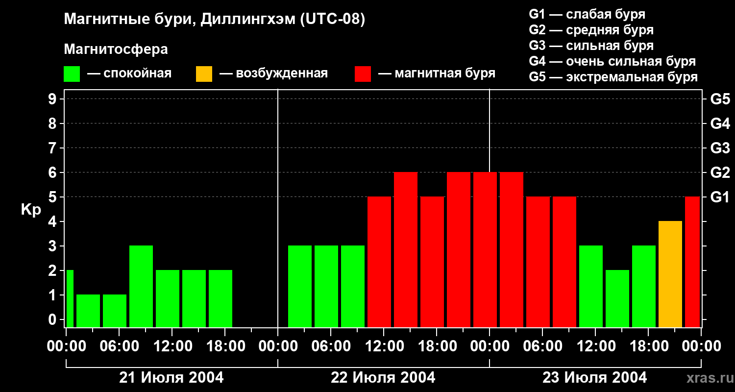 Магнитные бури в Диллингхэме — 23 июля 2004 года