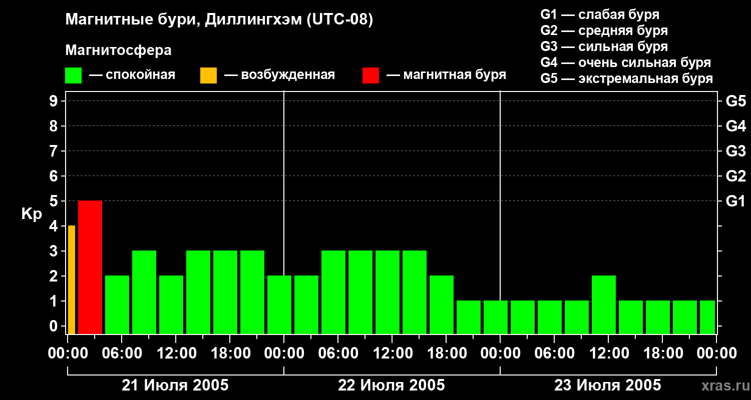 Магнитные бури в Диллингхэме — 23 июля 2005 года