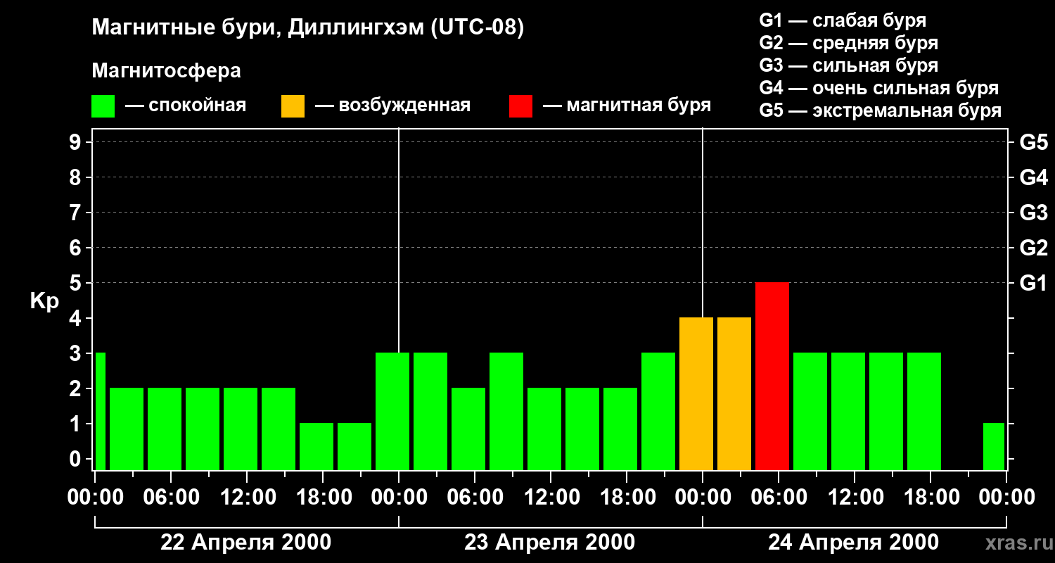 Магнитные бури в Диллингхэме — 24 апреля 2000 года