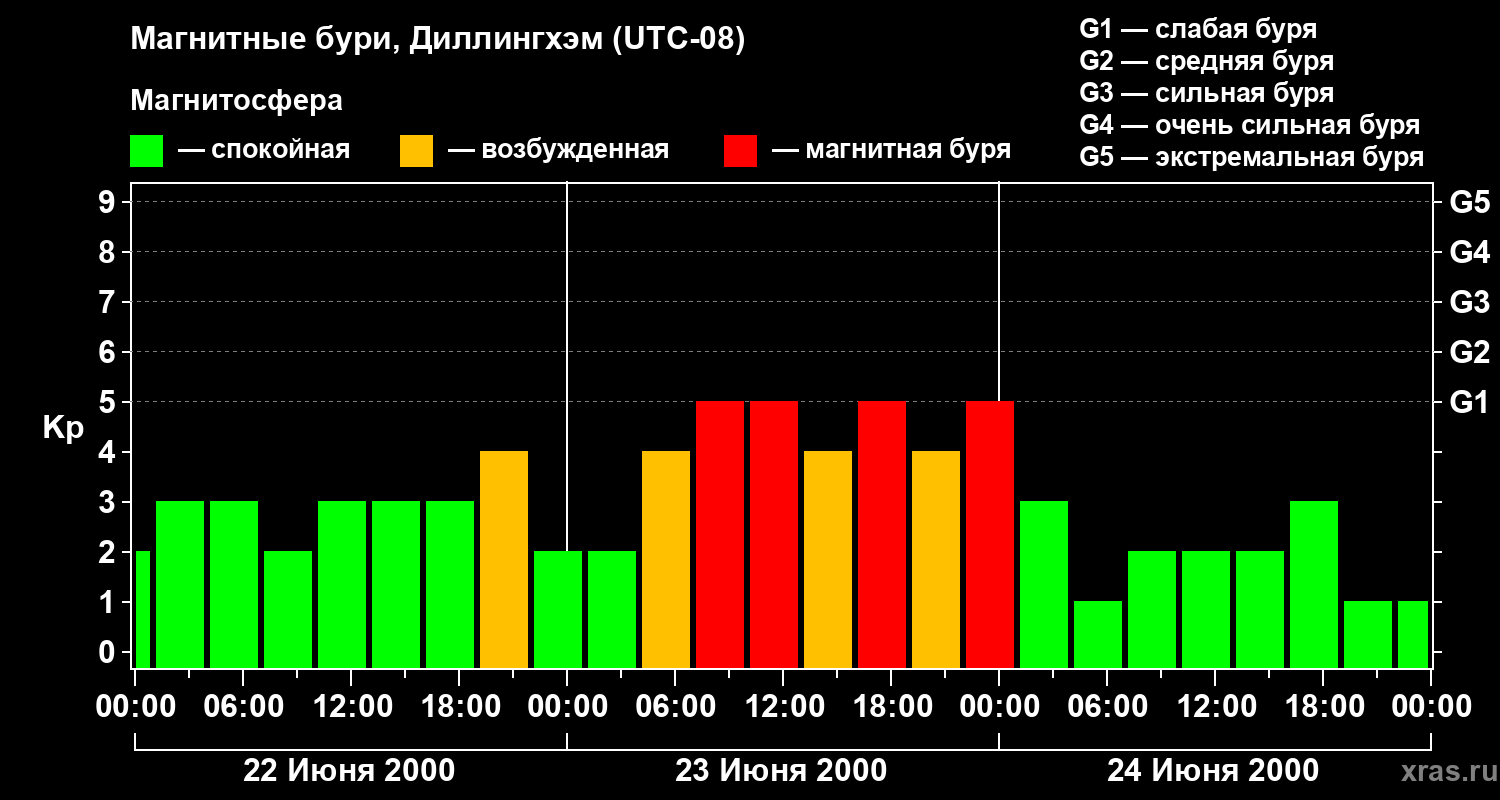 Магнитные бури в Диллингхэме — 24 июня 2000 года