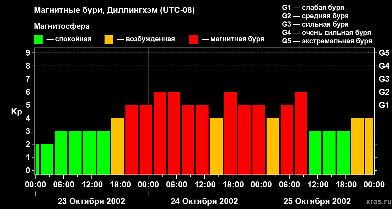 Магнитные бури в Диллингхэме 25 октября 2002 года