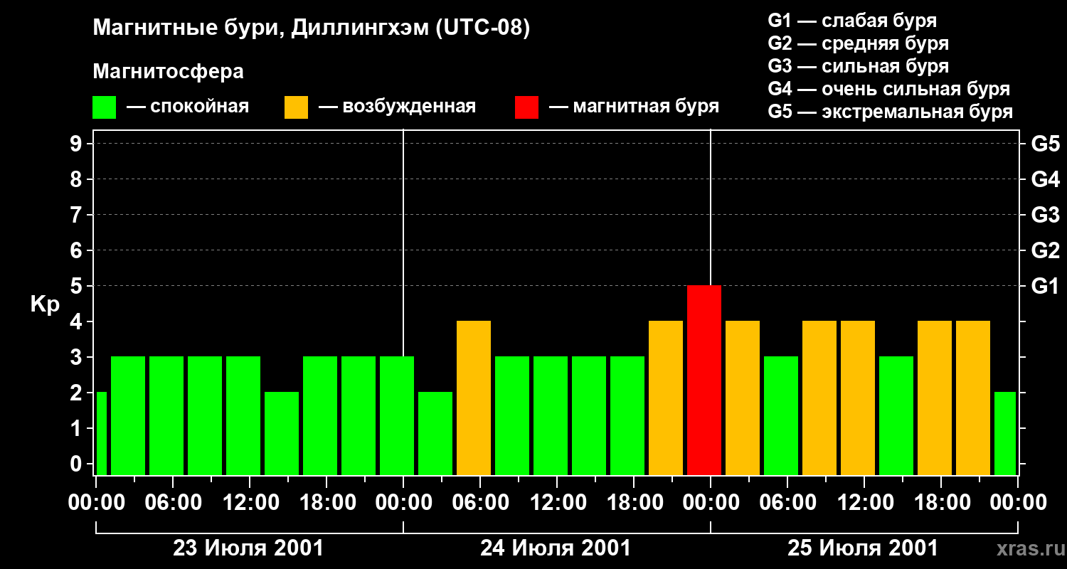 Магнитные бури в Диллингхэме 25 июля 2001 года
