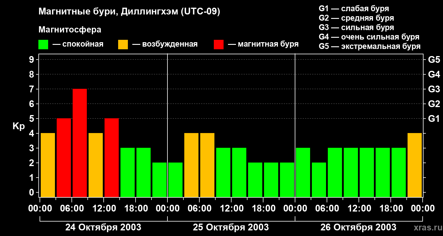 Магнитные бури в Диллингхэме — 26 октября 2003 года