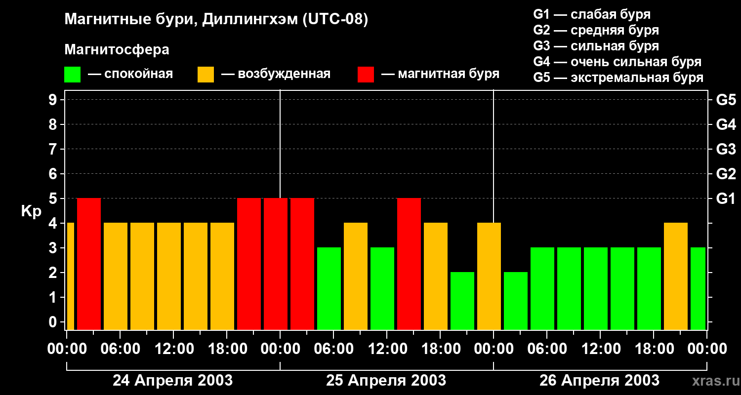Магнитные бури в Диллингхэме 26 апреля 2003 года