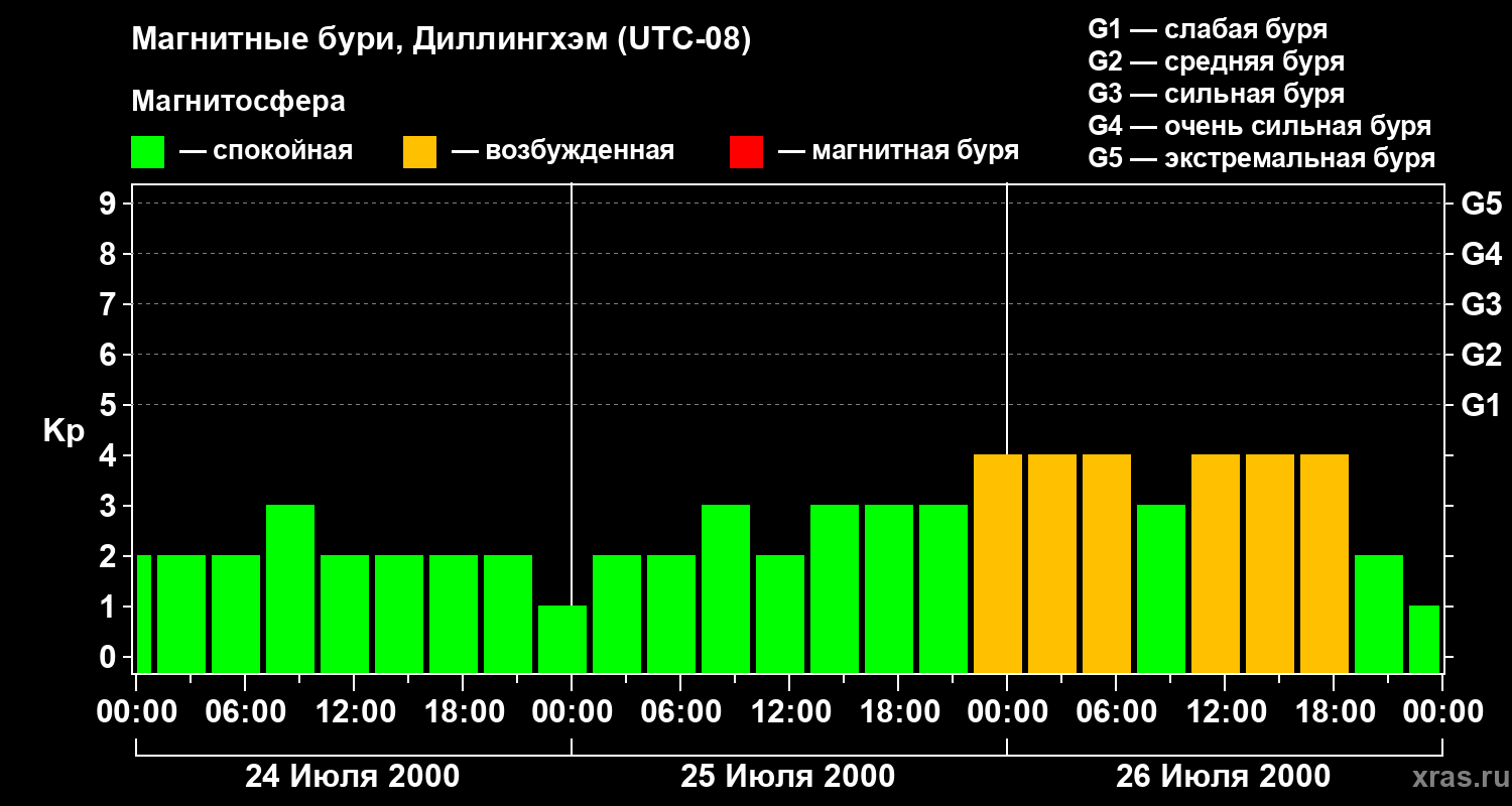 Магнитные бури в Диллингхэме 26 июля 2000 года