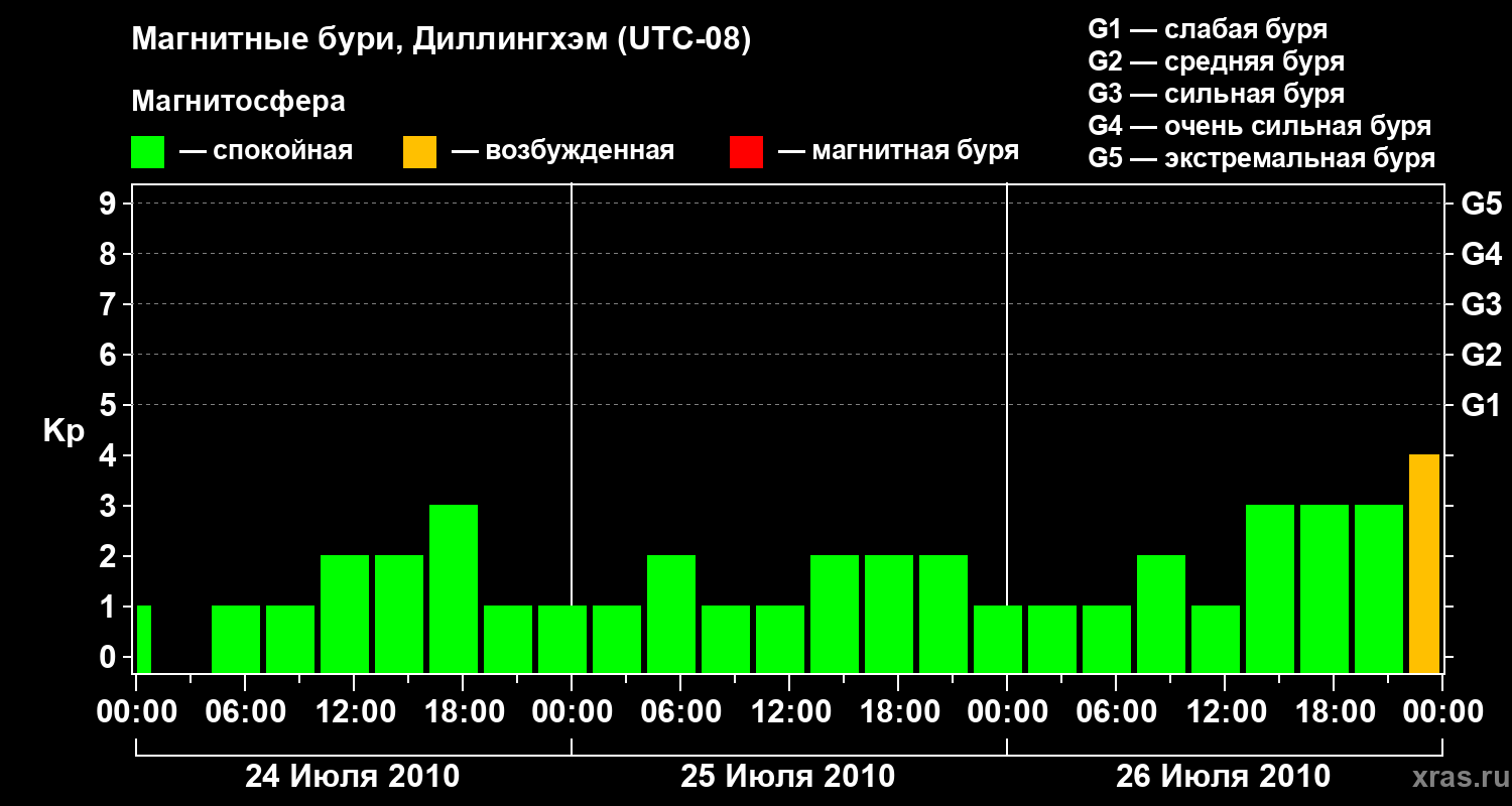 Магнитные бури в Диллингхэме — 26 июля 2010 года