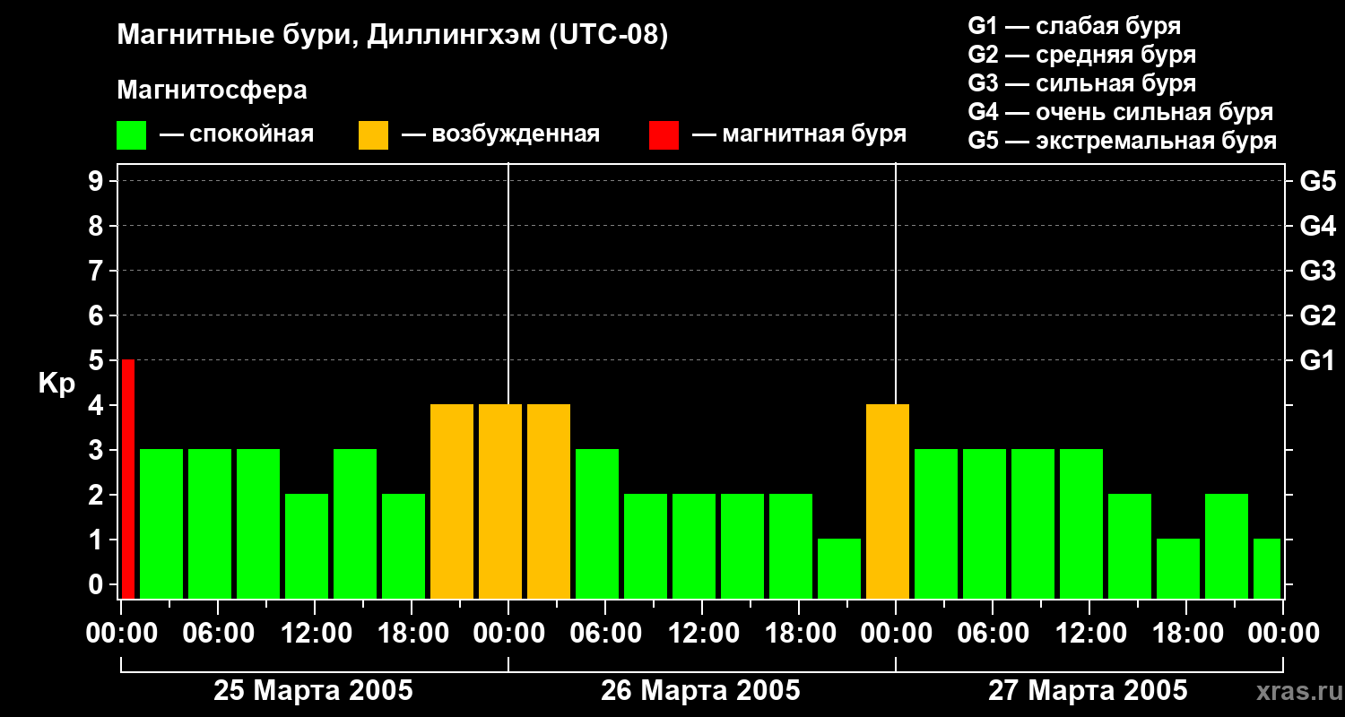 Магнитные бури в Диллингхэме 27 марта 2005 года
