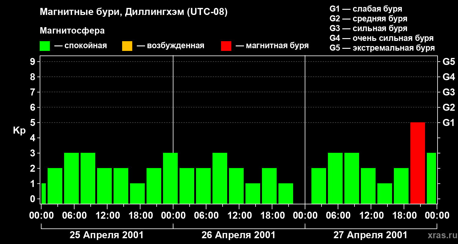 Магнитные бури в Диллингхэме 27 апреля 2001 года