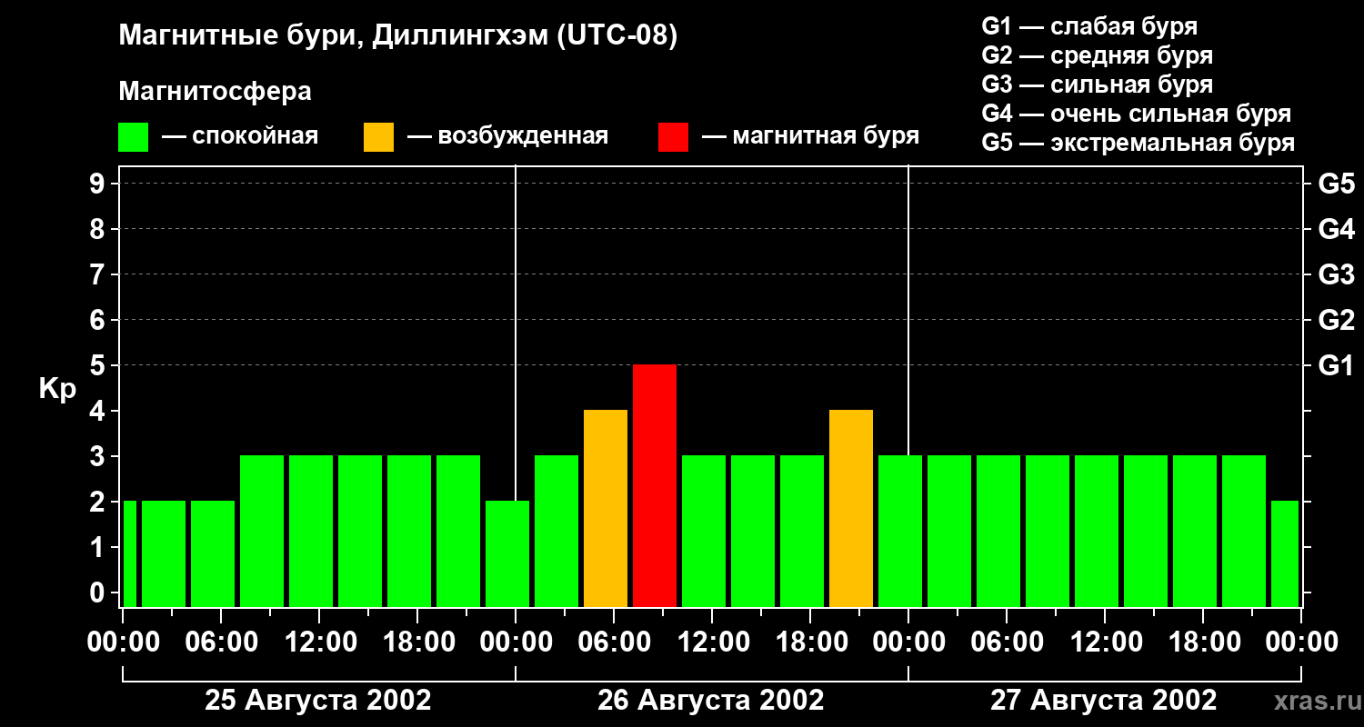 Магнитные бури в Диллингхэме 27 августа 2002 года