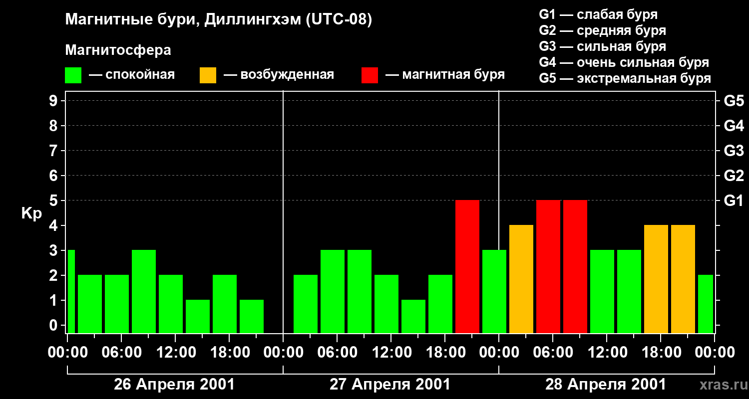 Магнитные бури в Диллингхэме 28 апреля 2001 года