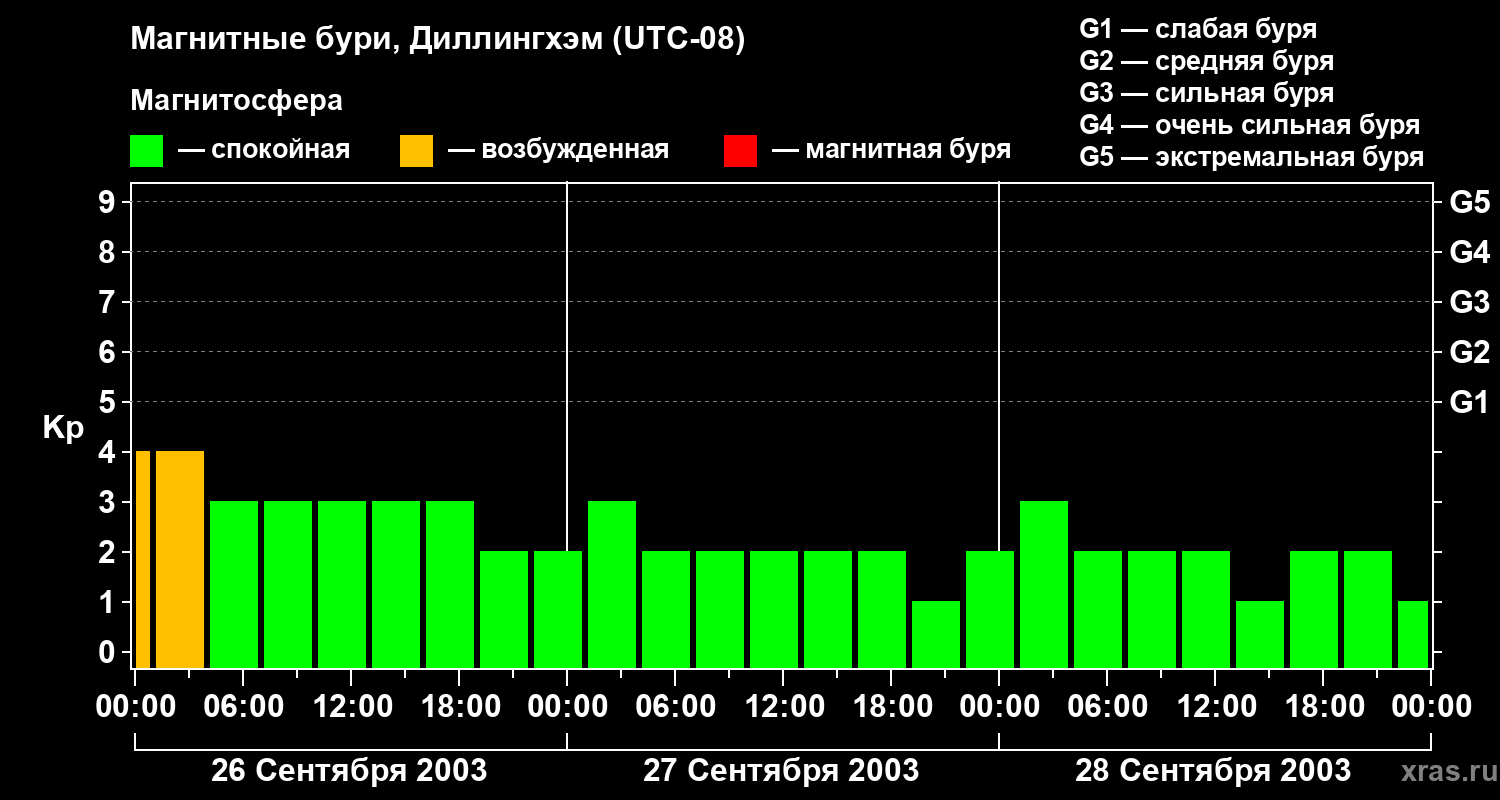 Магнитные бури в Диллингхэме — 28 сентября 2003 года