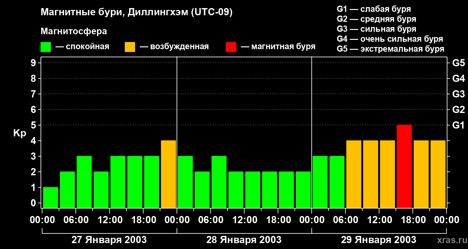 Магнитные бури в Диллингхэме — 29 января 2003 года