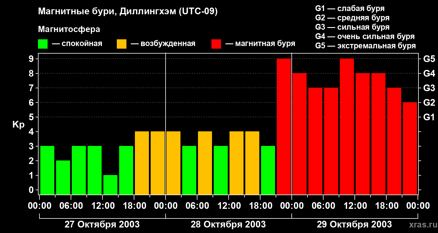 Магнитные бури в Диллингхэме — 29 октября 2003 года
