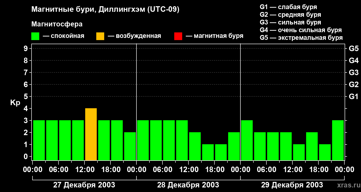Магнитные бури в Диллингхэме — 29 декабря 2003 года