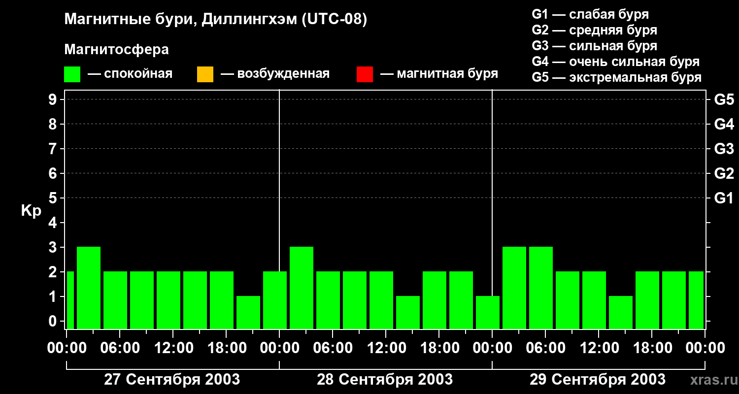 Магнитные бури в Диллингхэме — 29 сентября 2003 года