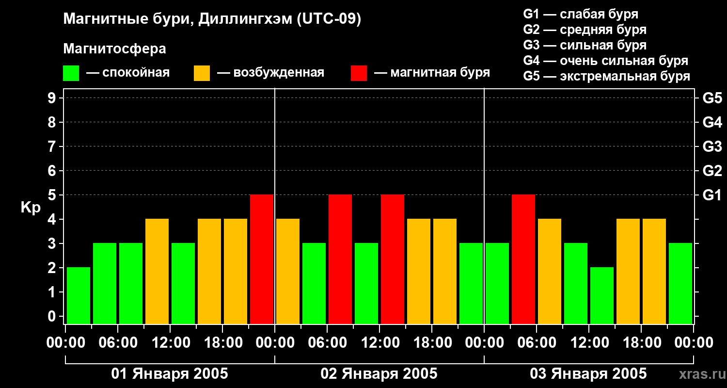 Магнитные бури в Диллингхэме 3 января 2005 года