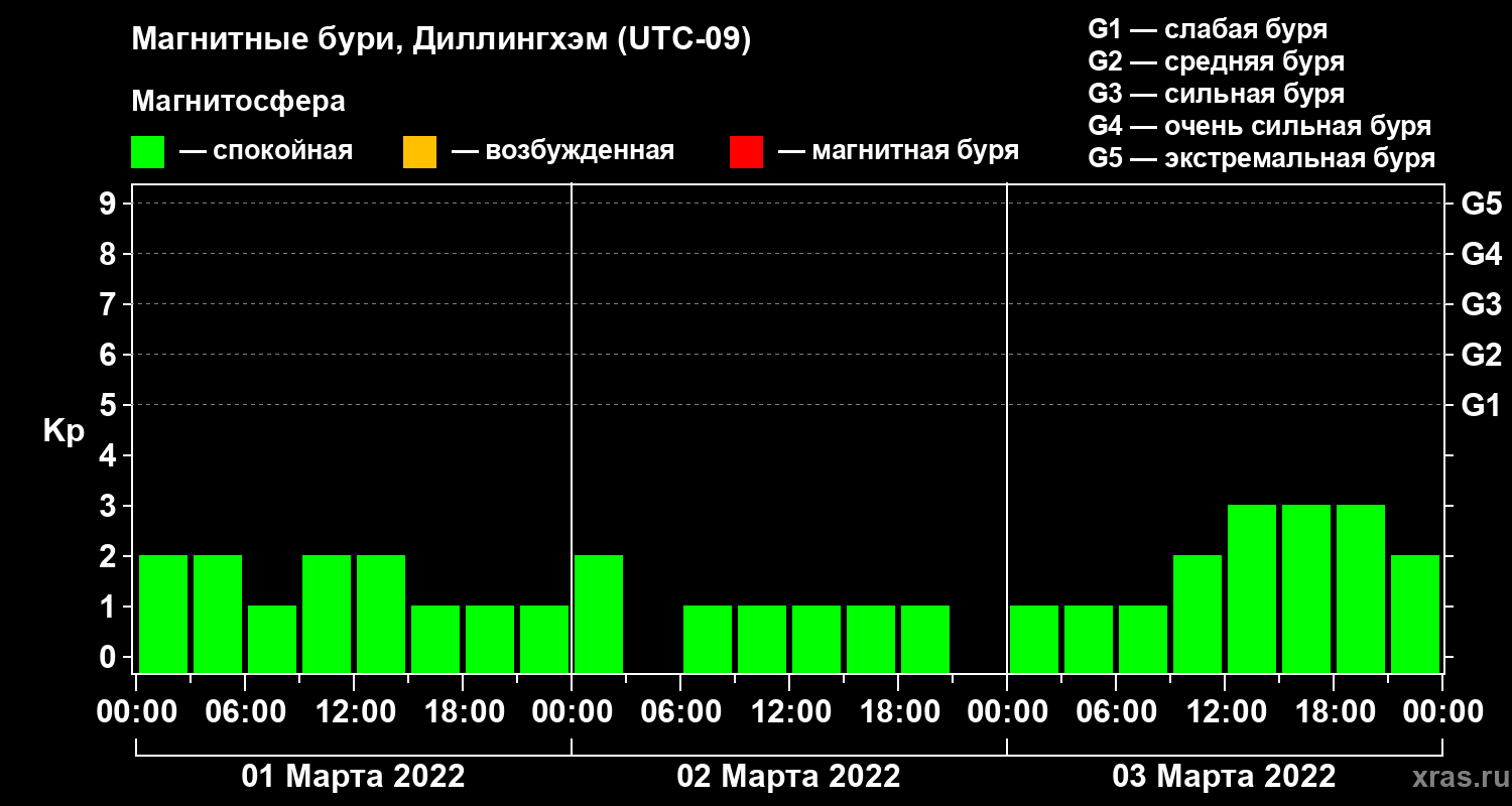 Магнитные бури в Диллингхэме — 3 марта 2022 года