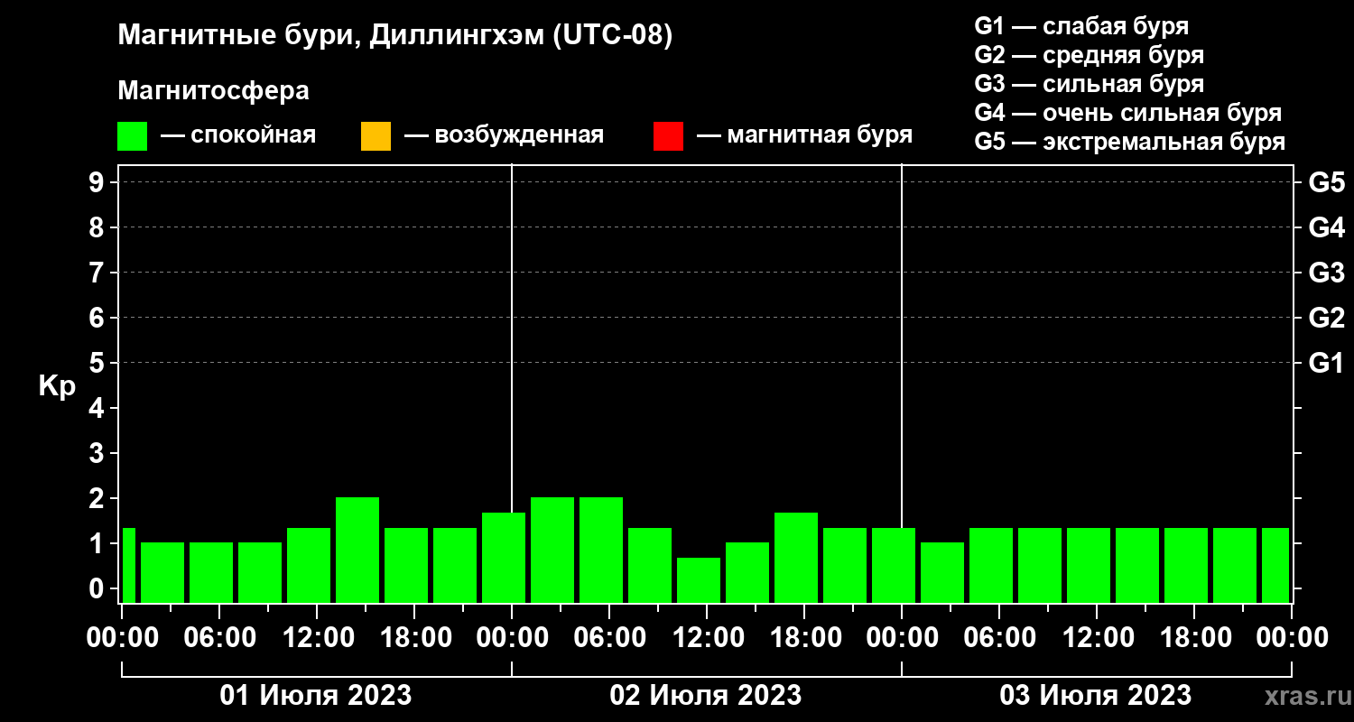 Магнитные бури в Диллингхэме 3 июля 2023 года