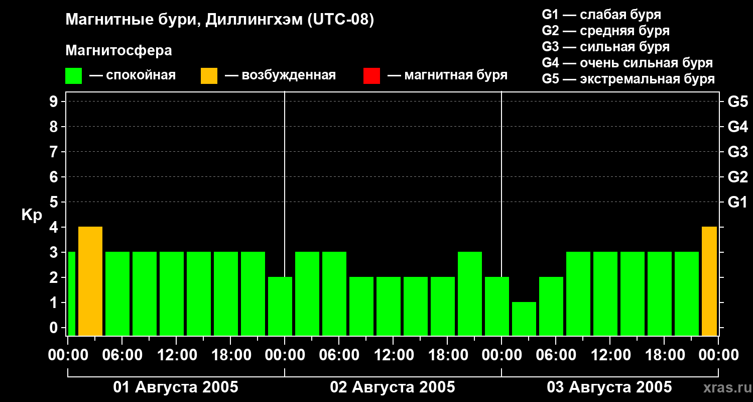 Магнитные бури в Диллингхэме 3 августа 2005 года