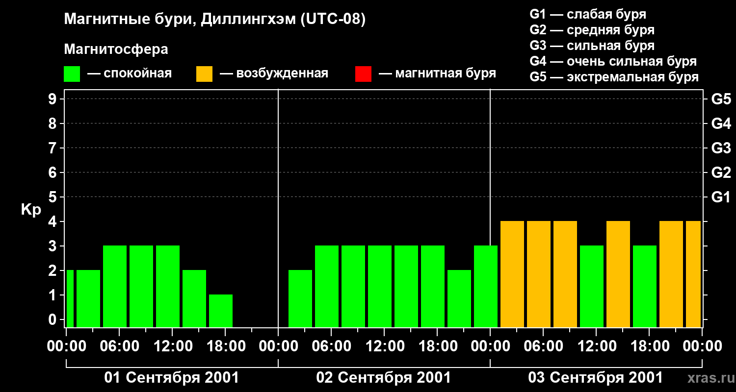 Магнитные бури в Диллингхэме 3 сентября 2001 года
