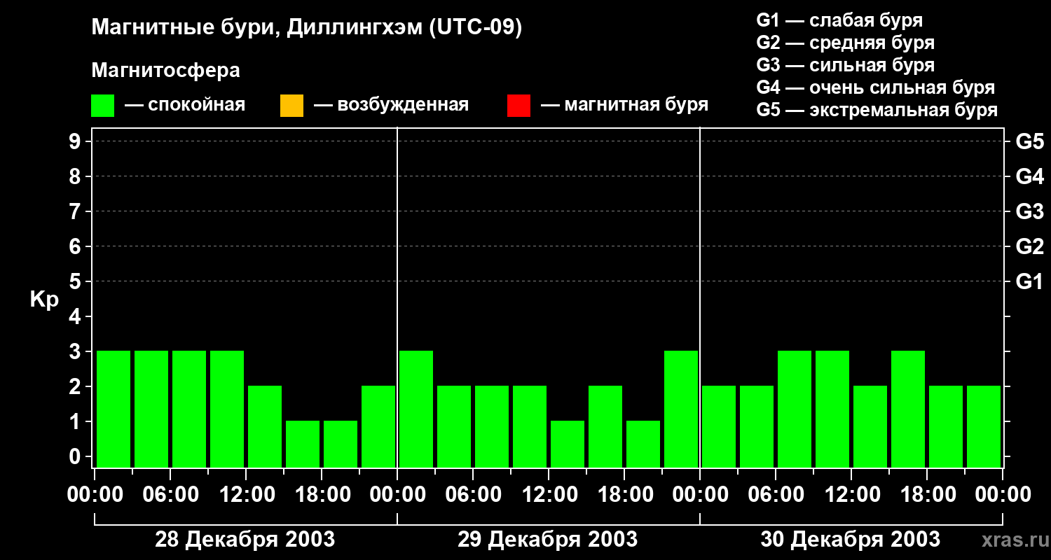 Магнитные бури в Диллингхэме — 30 декабря 2003 года