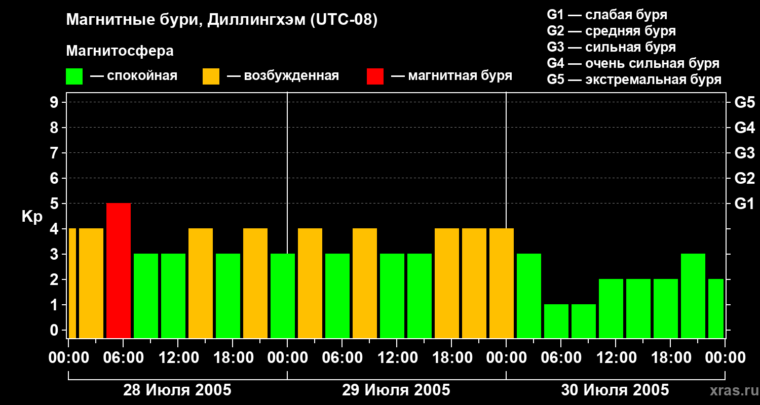 Магнитные бури в Диллингхэме 30 июля 2005 года