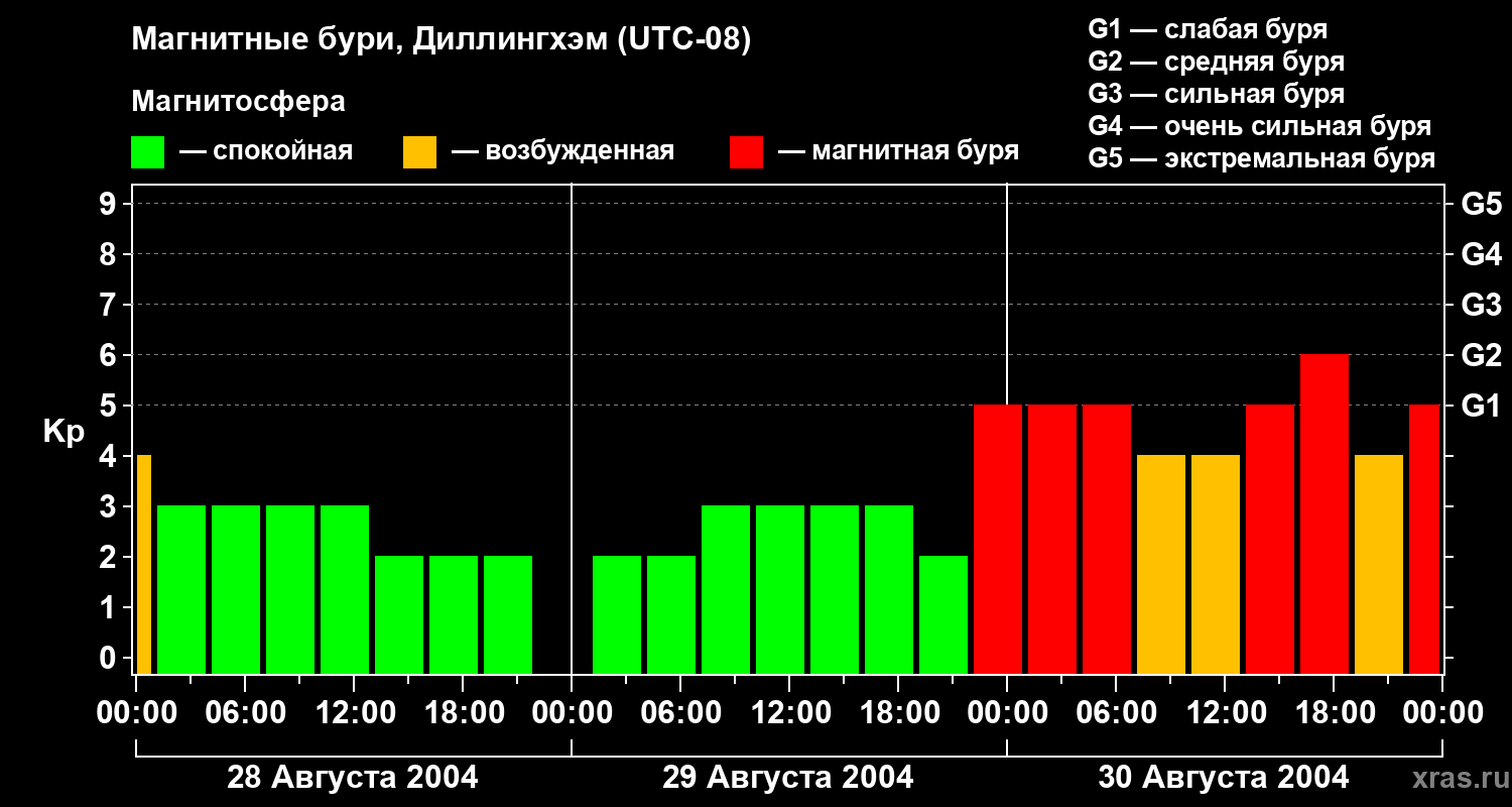 Магнитные бури в Диллингхэме — 30 августа 2004 года