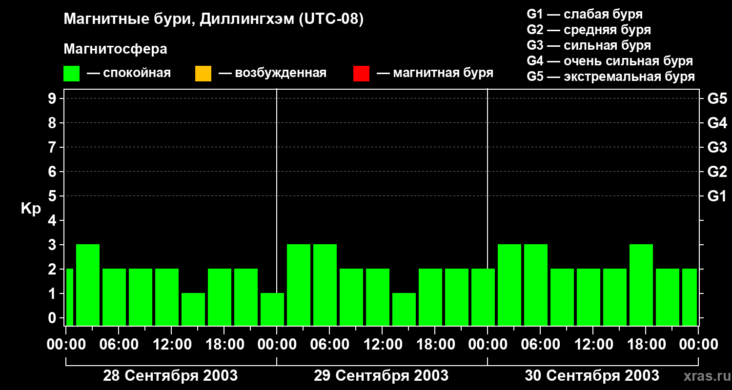 Магнитные бури в Диллингхэме — 30 сентября 2003 года