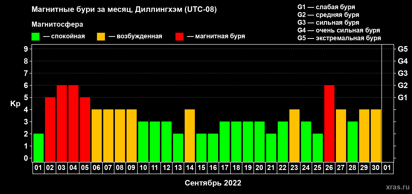 Магнитные бури в Диллингхэме 30 сентября 2022 года