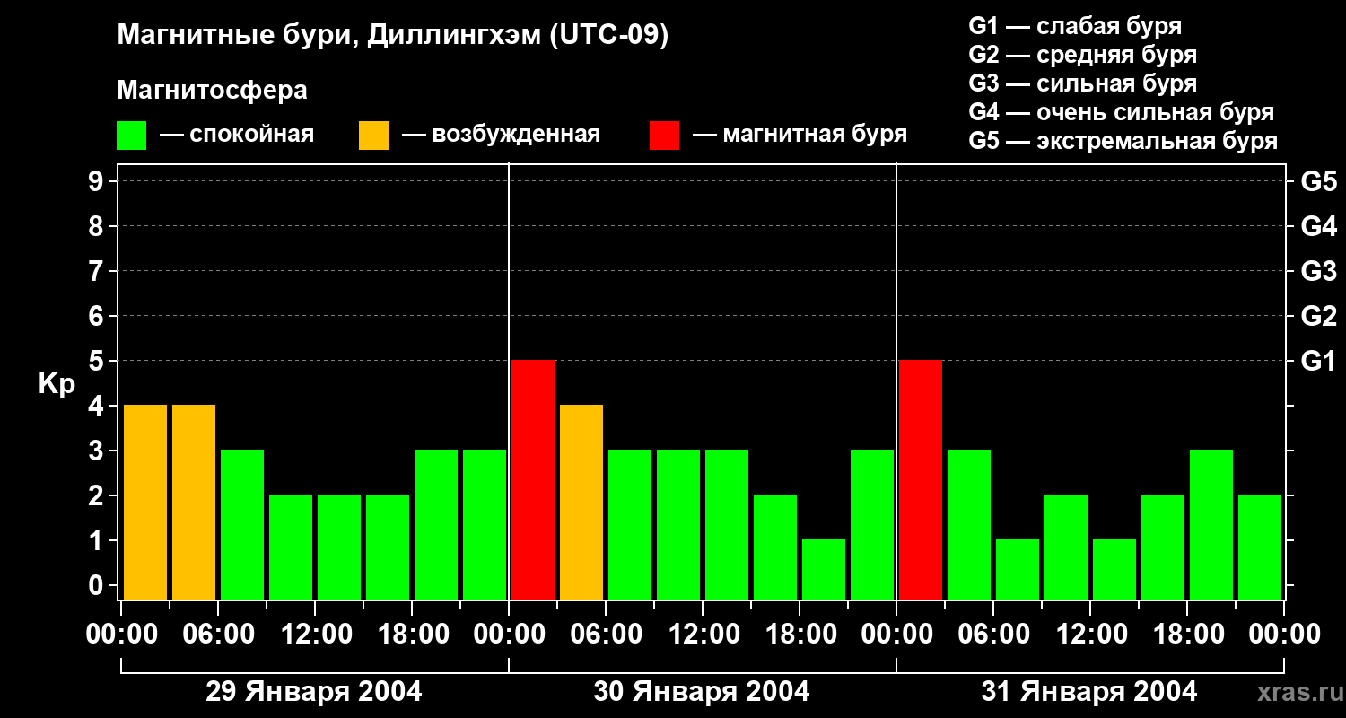 Магнитные бури в Диллингхэме — 31 января 2004 года