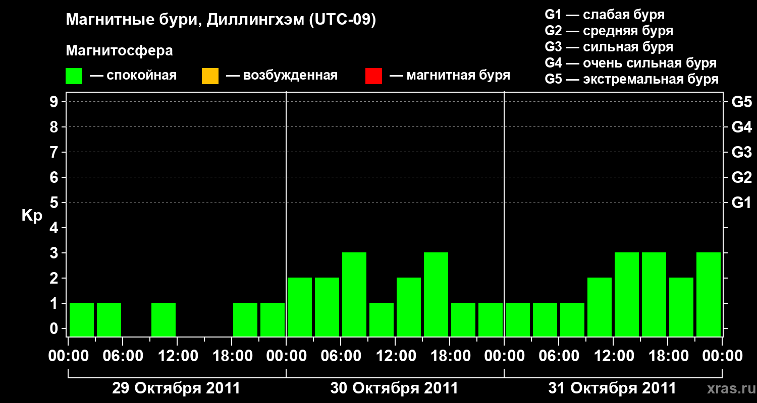 Магнитные бури в Диллингхэме — 31 октября 2011 года