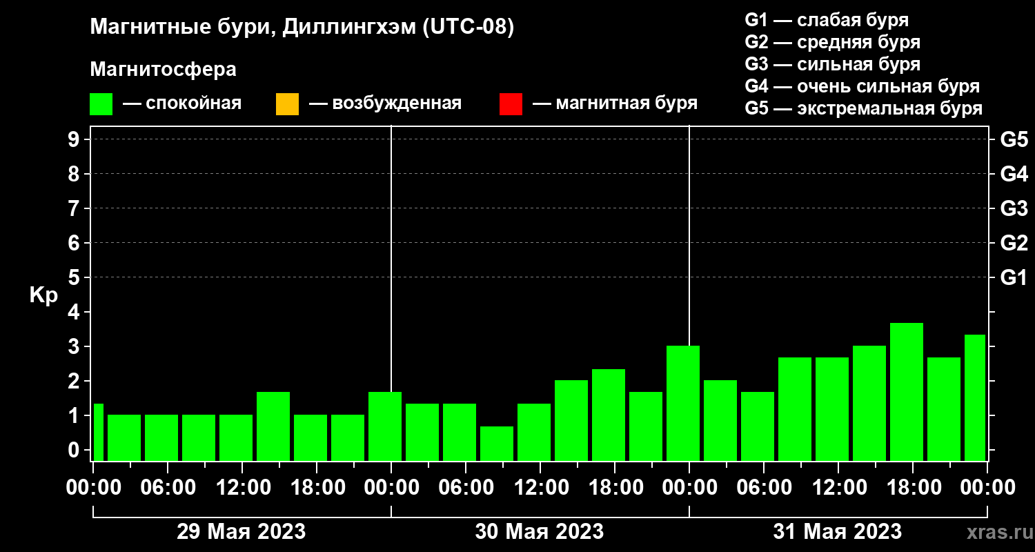 Магнитные бури в Диллингхэме 31 мая 2023 года