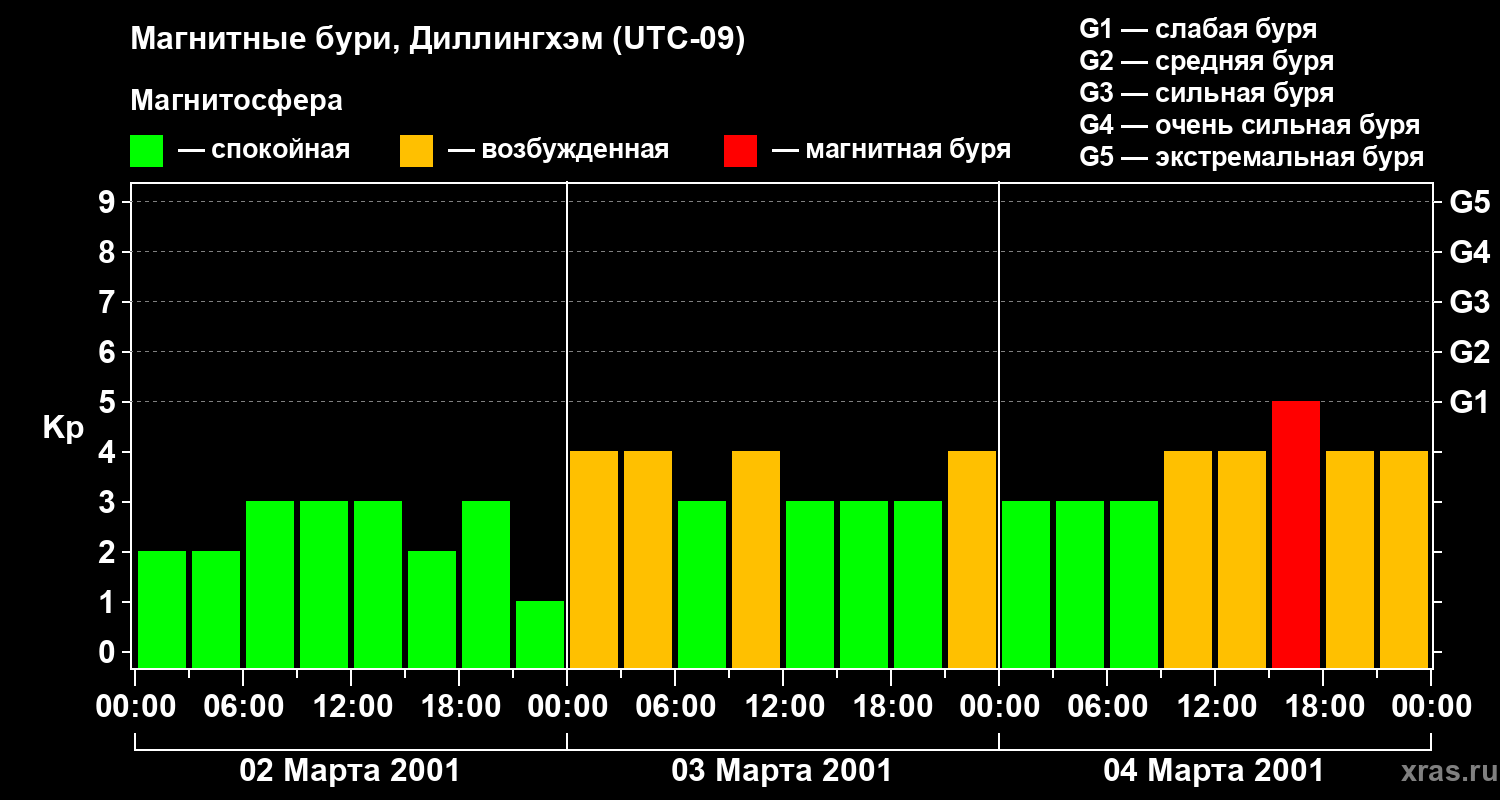 Магнитные бури в Диллингхэме 4 марта 2001 года
