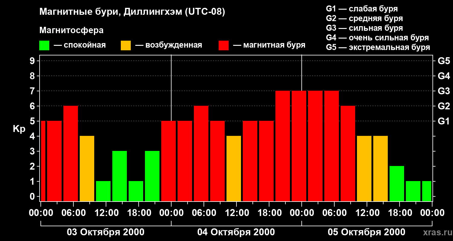 Магнитные бури в Диллингхэме 5 октября 2000 года