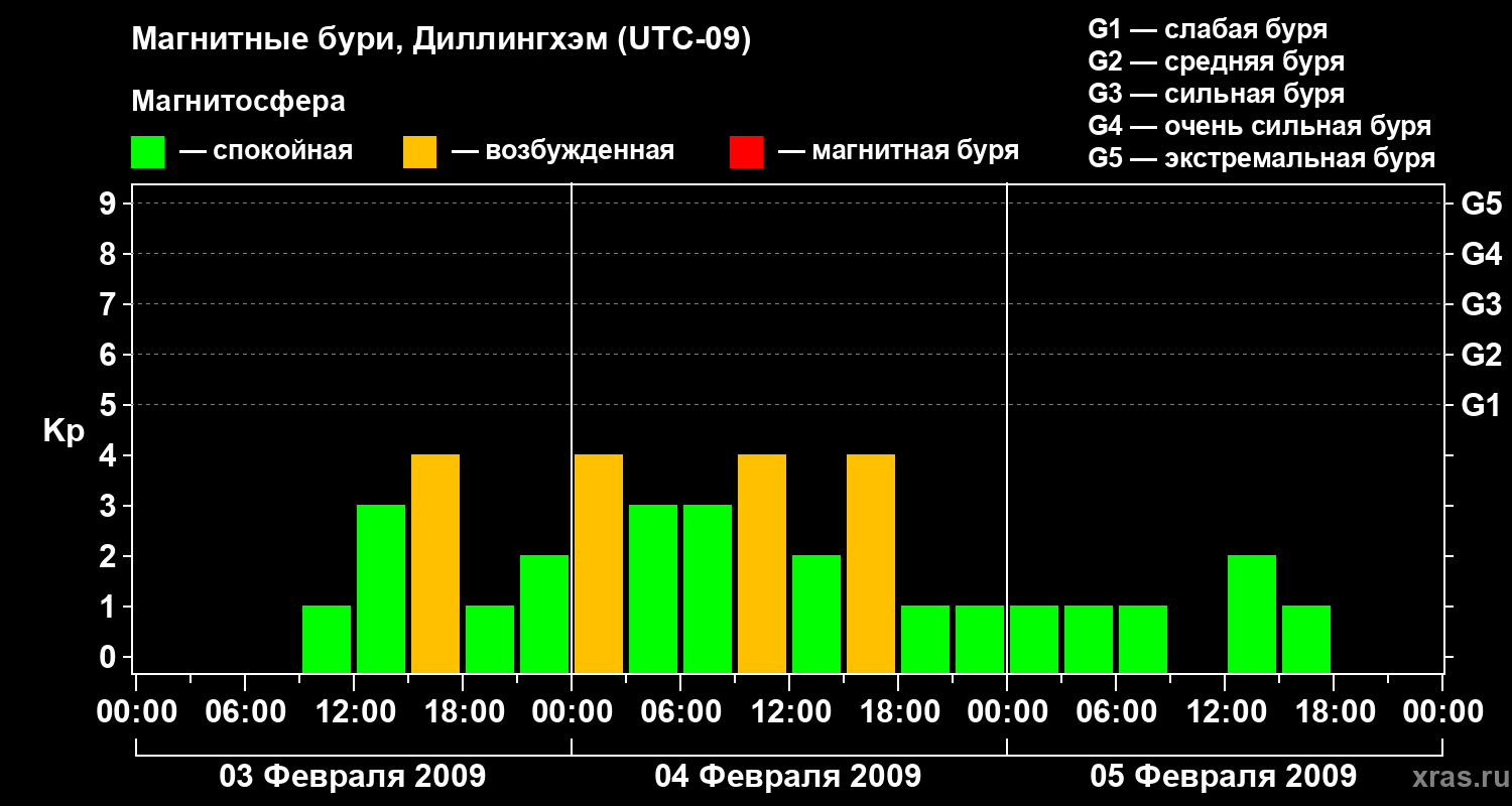 Магнитные бури в Диллингхэме — 5 февраля 2009 года