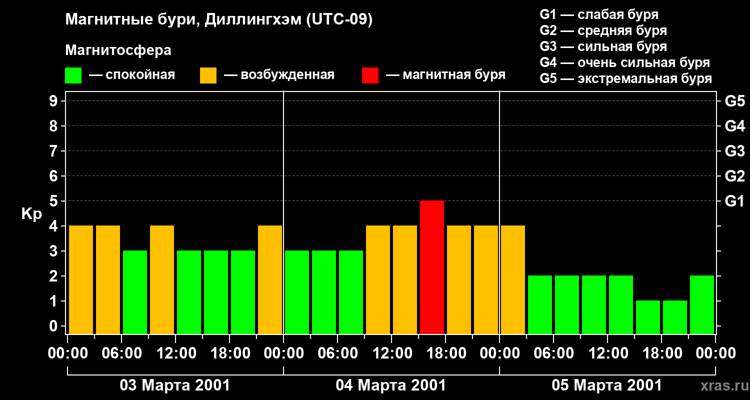 Магнитные бури в Диллингхэме 5 марта 2001 года