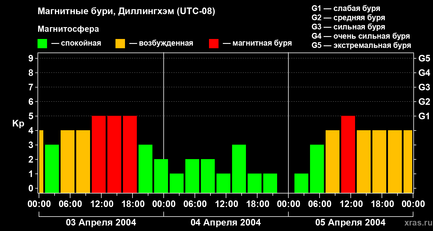 Магнитные бури в Диллингхэме — 5 апреля 2004 года