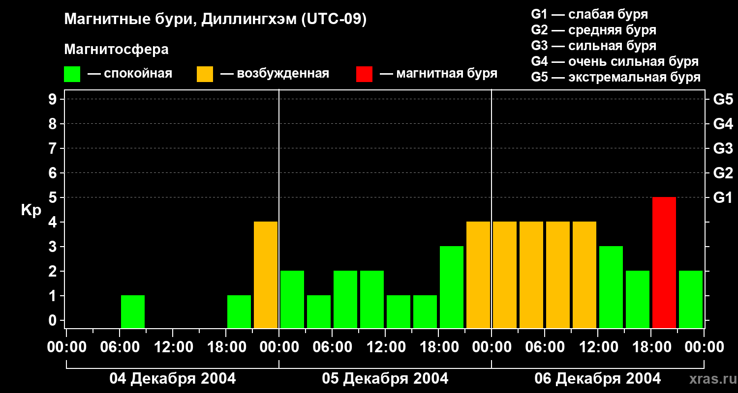 Магнитные бури в Диллингхэме 6 декабря 2004 года