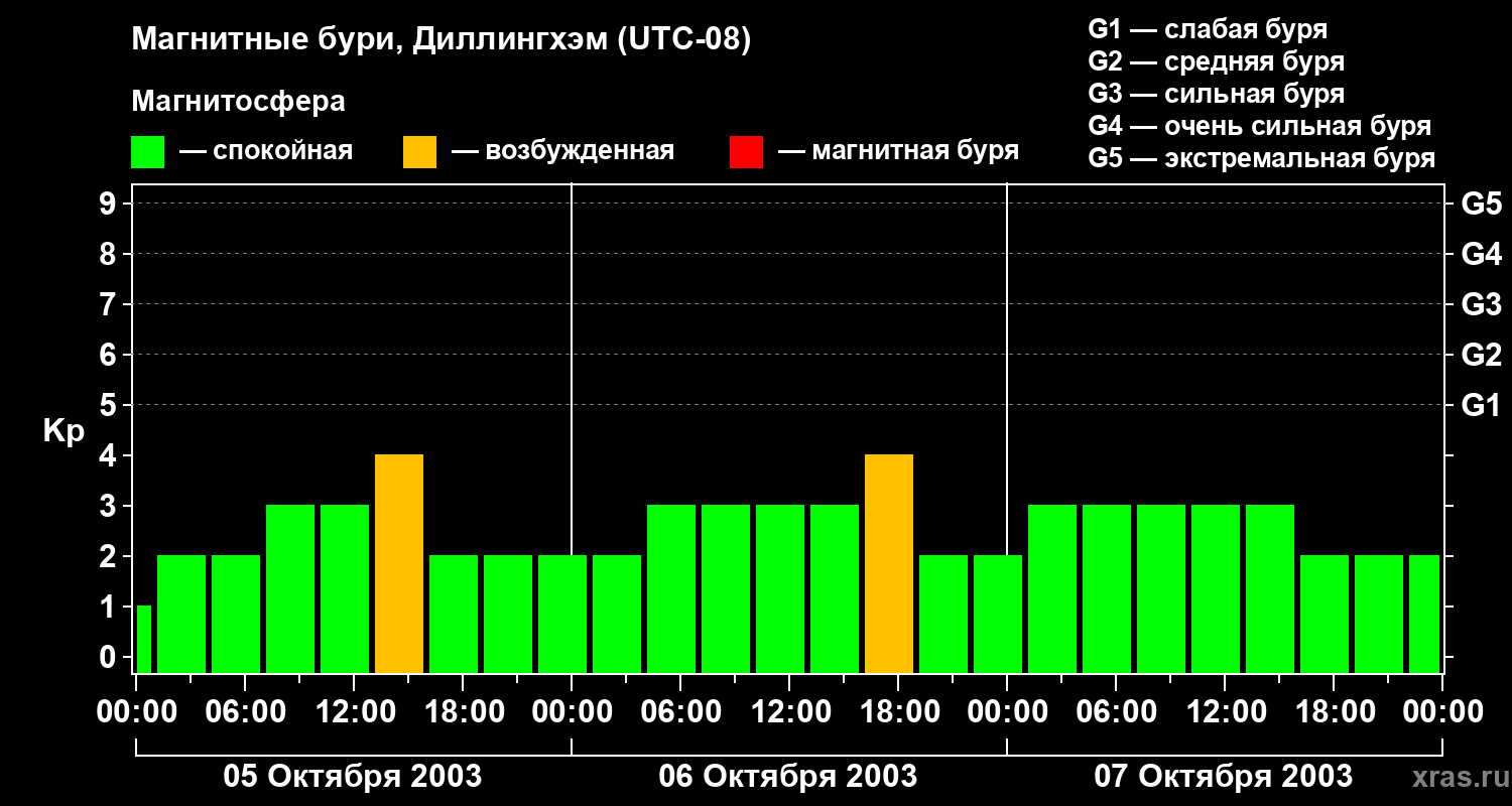 Магнитные бури в Диллингхэме — 7 октября 2003 года