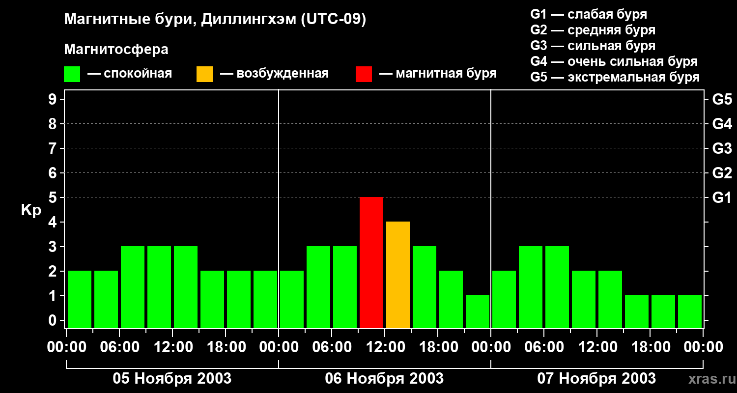 Магнитные бури в Диллингхэме в ноябре 2003 года