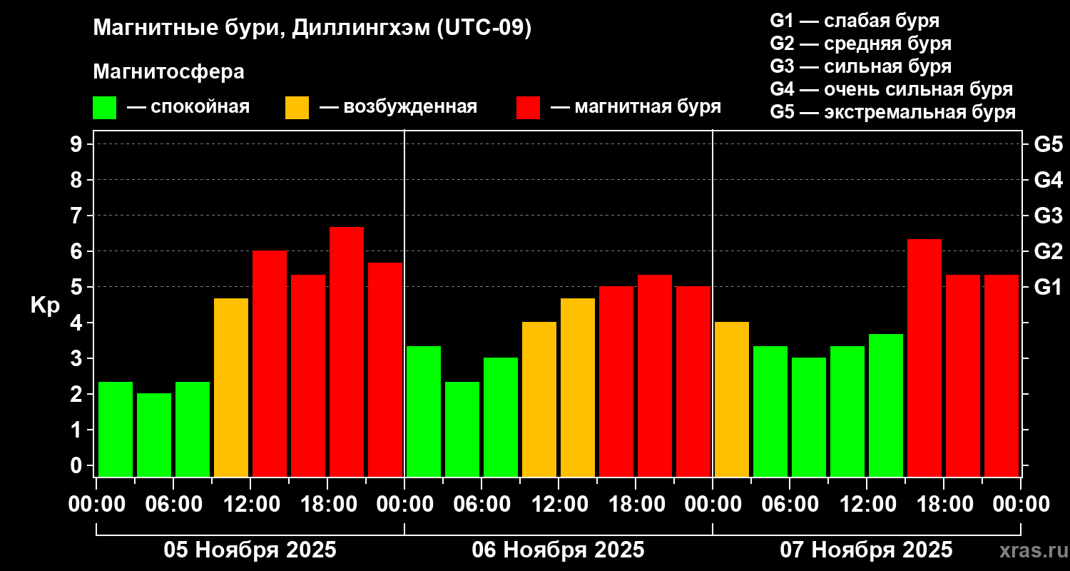 Магнитные бури в Диллингхэме 7 ноября 2025 года