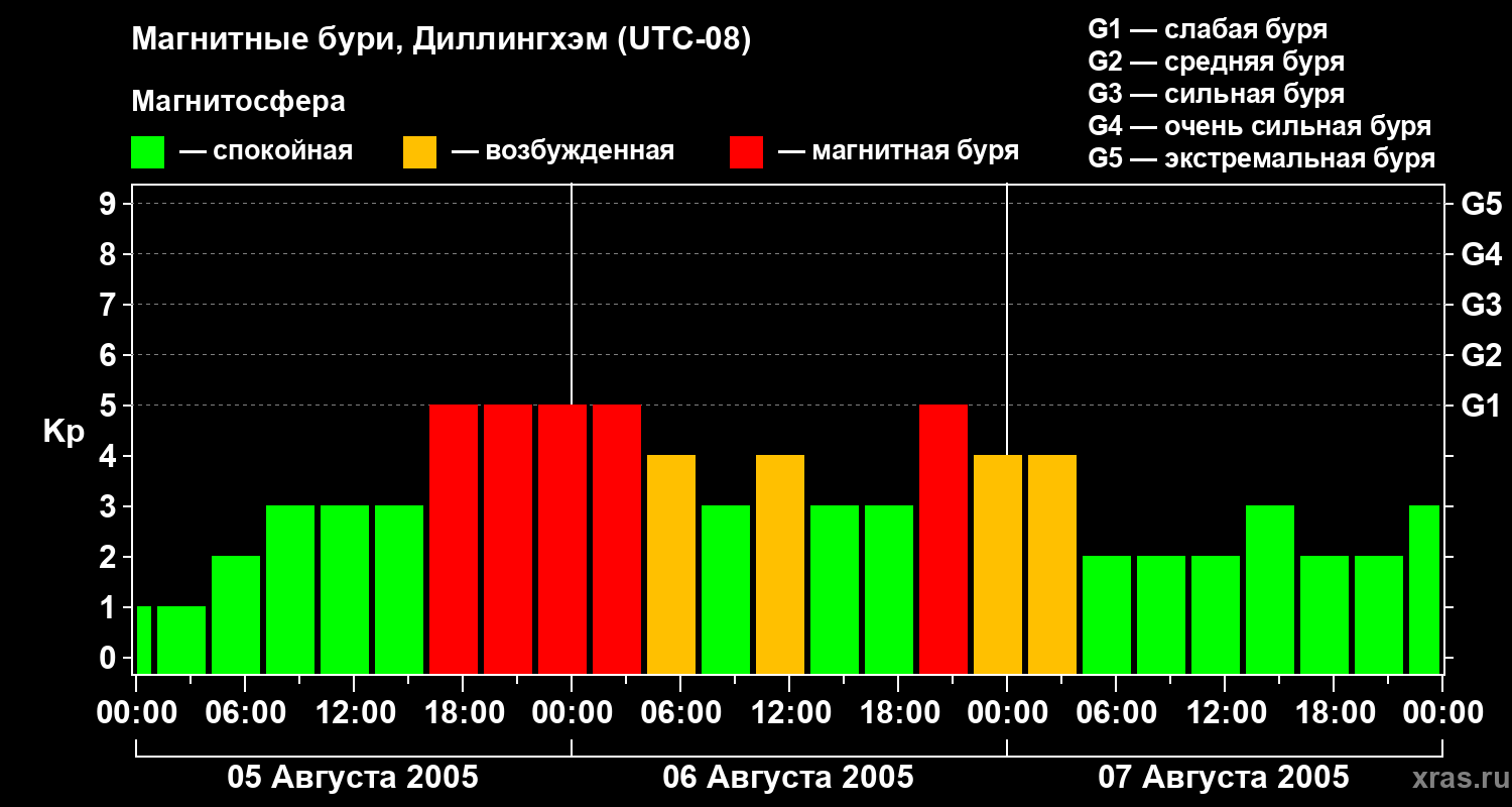 Магнитные бури в Диллингхэме 7 августа 2005 года