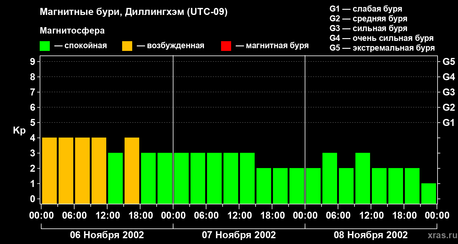 Магнитные бури в Диллингхэме 8 ноября 2002 года