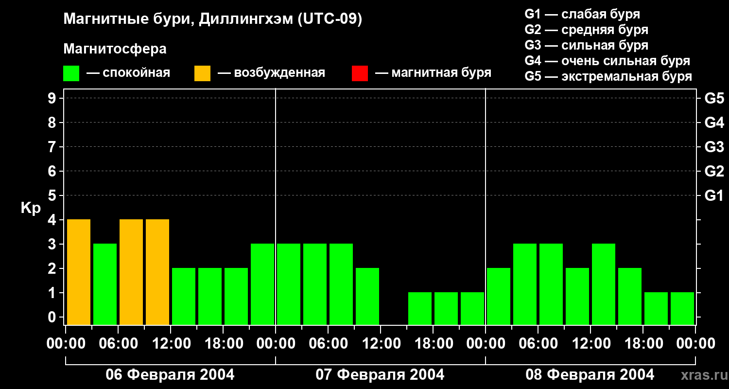 Магнитные бури в Диллингхэме в феврале 2004 года