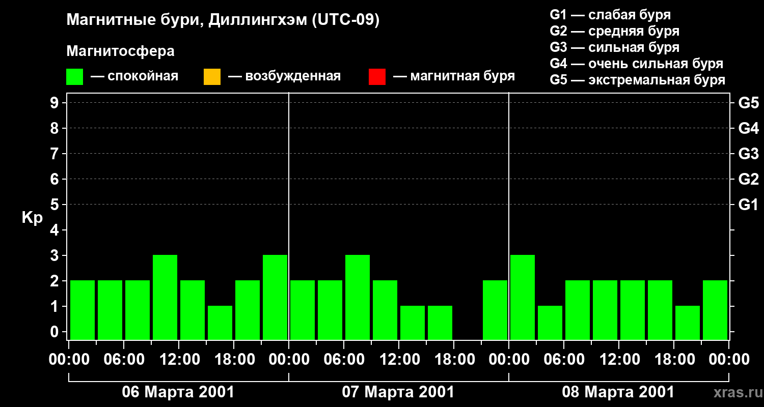 Магнитные бури в Диллингхэме 8 марта 2001 года