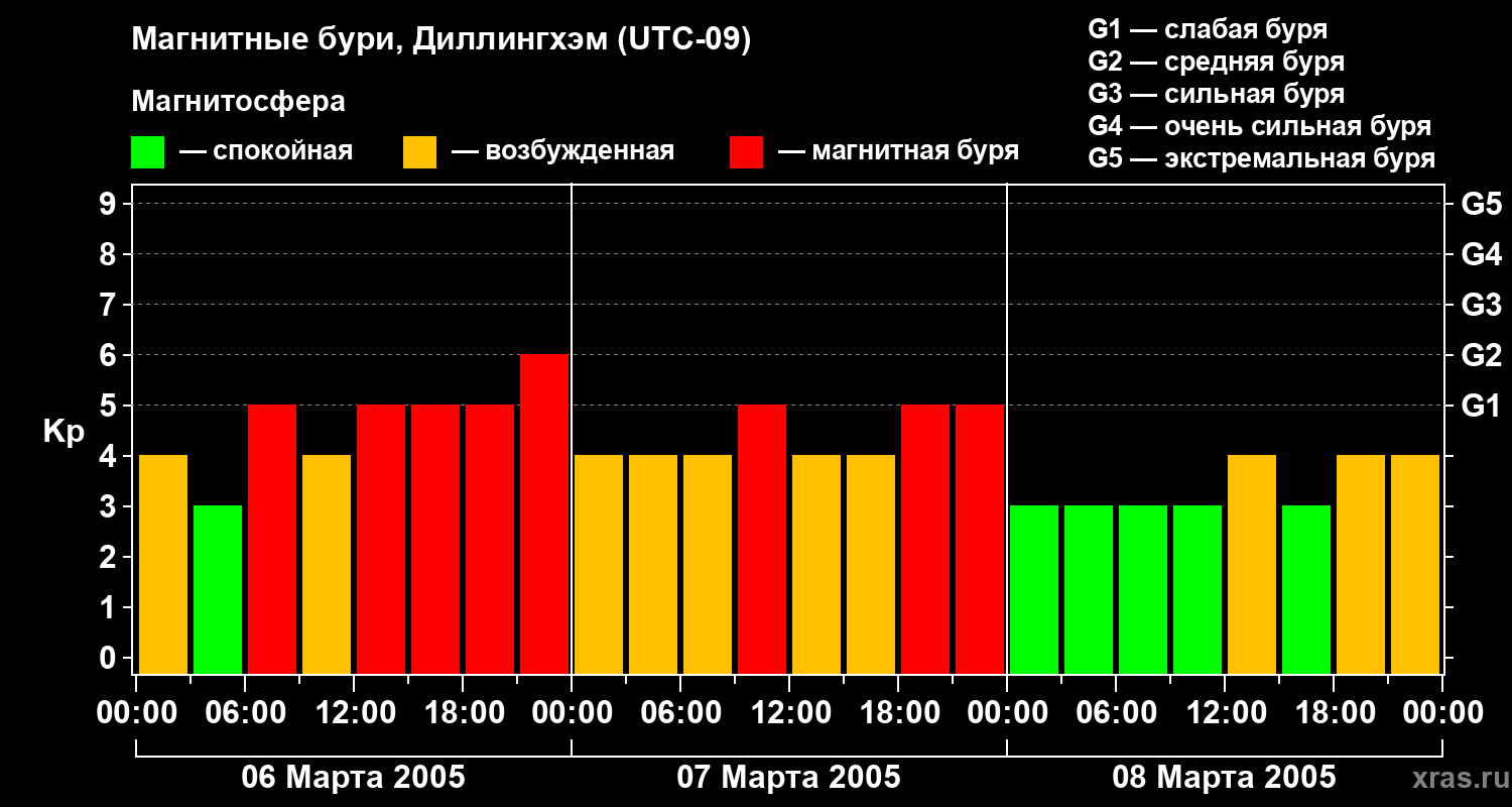 Магнитные бури в Диллингхэме 8 марта 2005 года