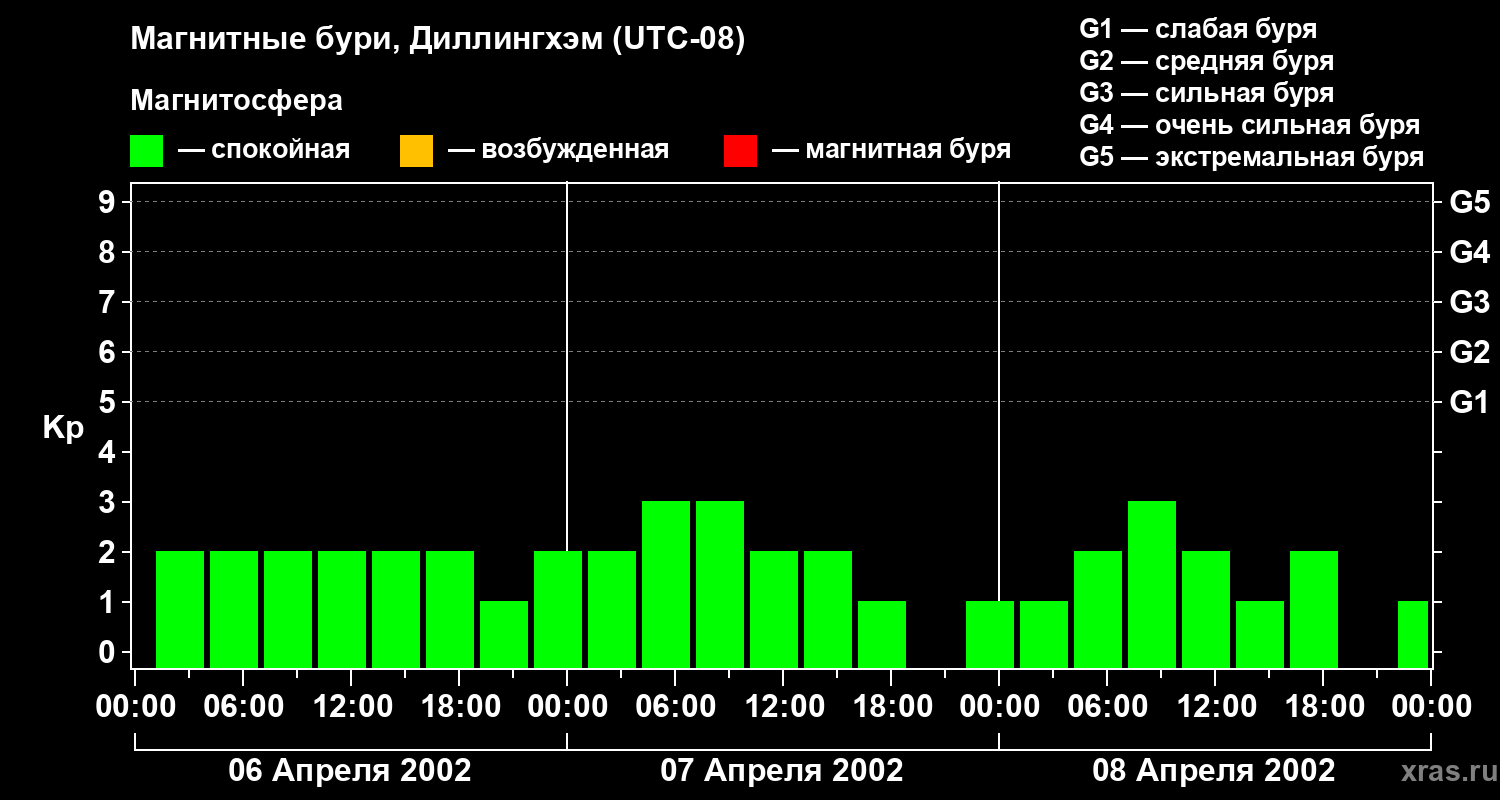 Магнитные бури в Диллингхэме 8 апреля 2002 года